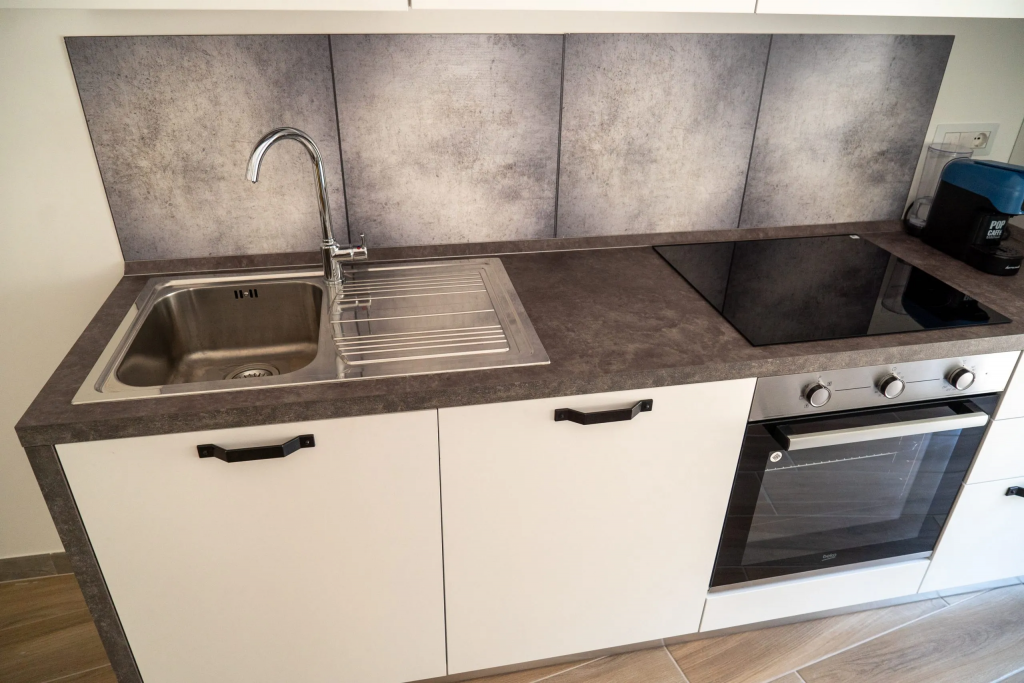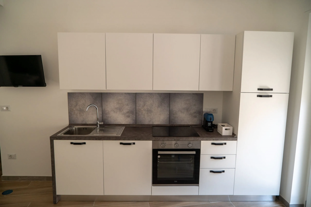 La cucina è attrezzata con frigorifero, forno, macchina del caffè e ferro da stiro, mentre l’area soggiorno offre Wi-Fi gratuito e TV per il vostro intrattenimento.